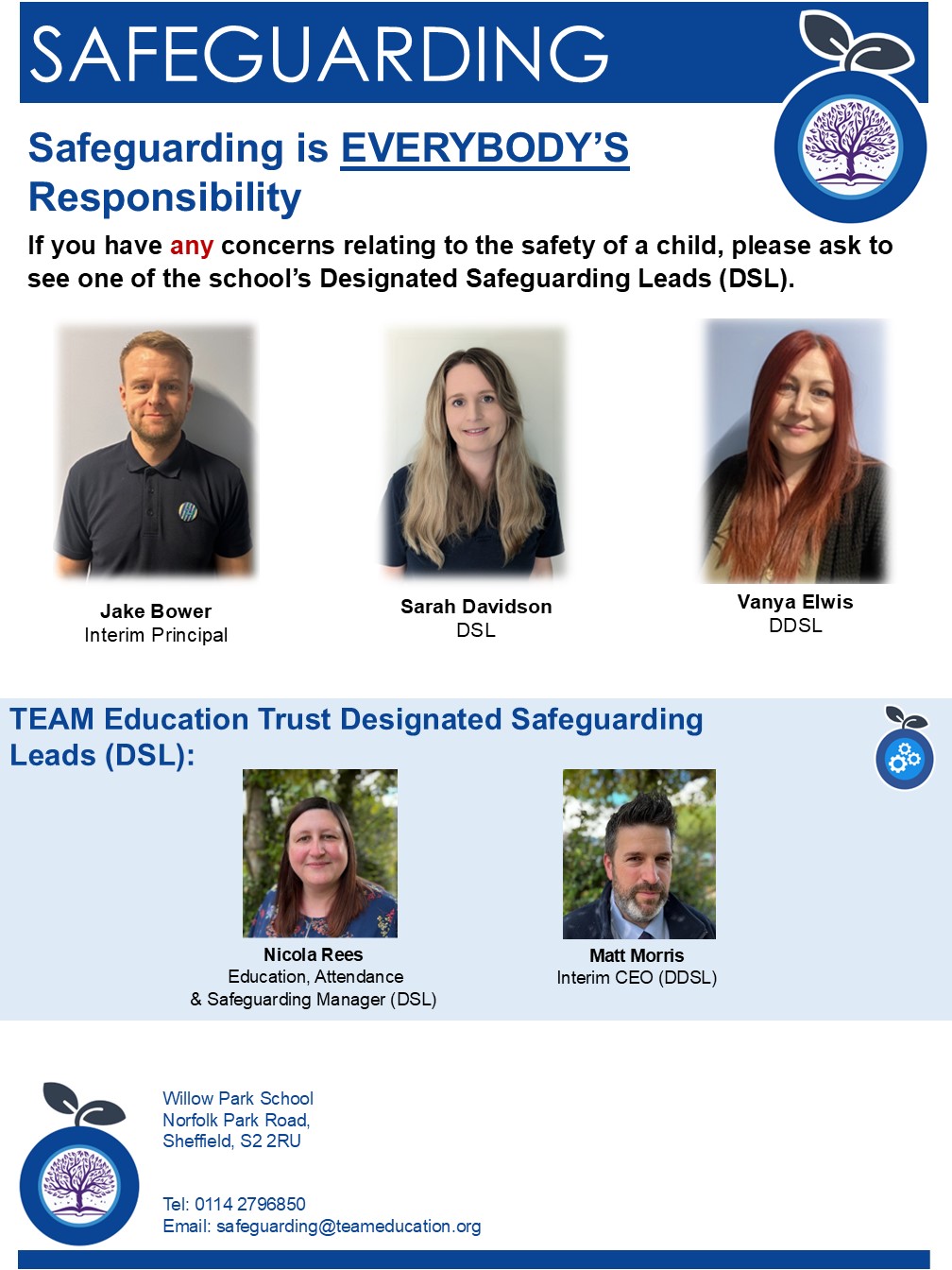 Our school’s safeguarding team are available between 8.15am and 4.00pm Monday to Friday. Outside of these times, you will not be able to contact the Designated Safeguarding Lead or the Designated Safeguarding Deputies; any messages left will be responded to when we return to school.